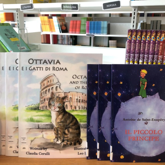 Vi har även fått in de första två titlarna på italienska. Den ena boken har parallelltext på italienska och engelska som handlar om en katt i Rom. Den andra är det klassiska mästerverket om den lille prisen skriven av Antoine De Saint-Exupéry.